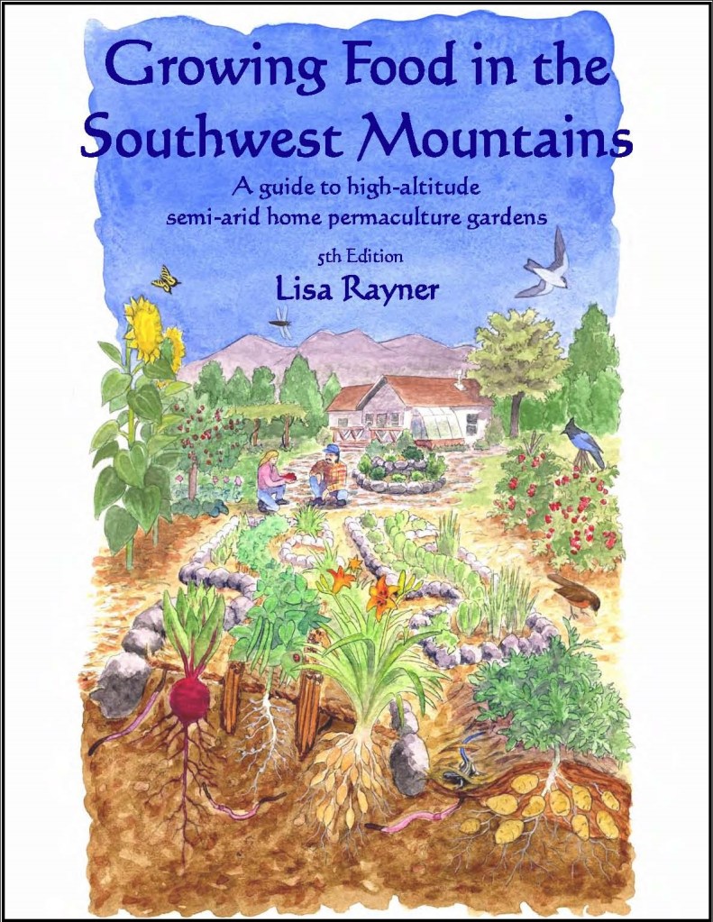 Growing Food in the Southwest Mountains: A guide to high-altitude, semi-arid home permaculture gardens, Fifth Edition, © 1996, 2023 Lisa Rayner, Lisa Rayner Books. Print and Kindle editions on Amazon and a PDF eBook version at Lisa Rayner Handwovens on Etsy.