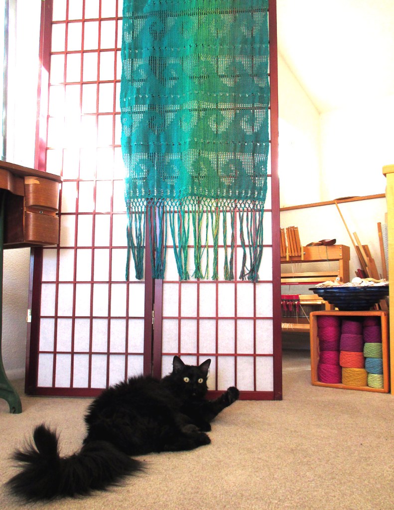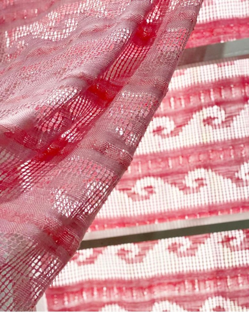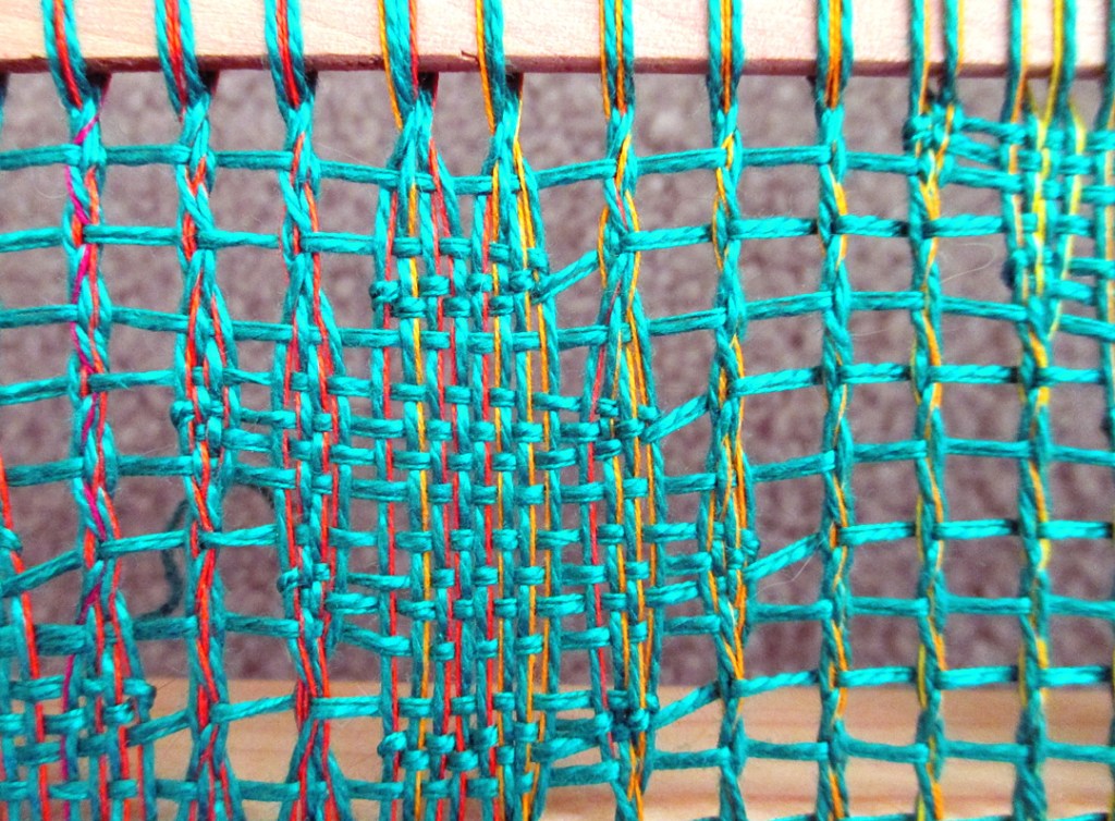Below are photos from another weaver who chose a different yarn than the original, demonstrating the versatility of the combined lace technique: