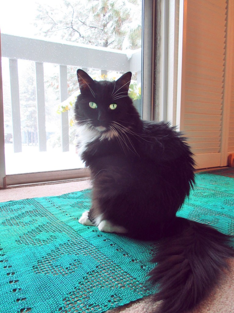 Suitable for rigid heddle looms and shaft looms. Lisa wove this shawl on a 25-inch-wide Schacht Flip rigid heddle loom. Fine mercerized cotton yarns in rainbow colors combine with 5/2 mercerized cotton in jade green to create an iridescent-looking fabric, but the shawl can be woven with a single yarn as well, as shown below.